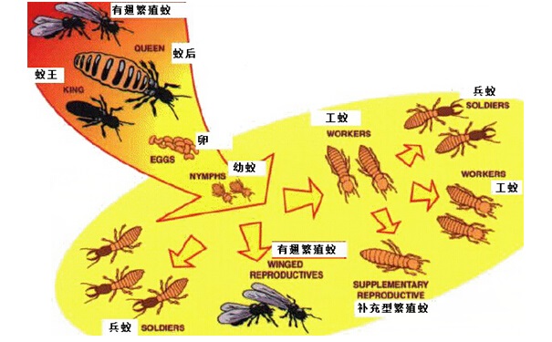 白蟻的種類有很多種,中國已知有白蟻4科、47屬、480多種,國內(nèi)28個(gè)?。ㄊ?、自治區(qū))均有分布。其中危害較嚴(yán)重的有土木棲的鼻白蟻科乳白蟻屬的家白蟻(臺灣乳白蟻)、散白蟻、土棲的黑翅大白蟻、堆砂白蟻、黃胸散白蟻等,對房屋建筑危害最嚴(yán)重的是家白蟻。
